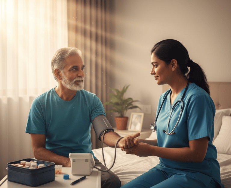 At Samarpan Care, our caretakers make the transition from hospital to home smooth and stress-free. We assist with daily routines, ensure timely medicines as prescribed, support with light exercises or mobility as guided, and provide warm companionship — helping your loved one regain strength with dignity and comfort.